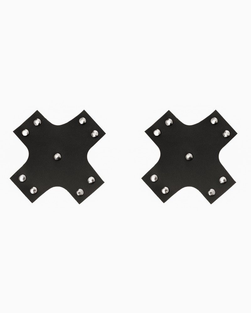 Пэстисы - сексуальные накладки на соски, выполненные из экокожи в виде креста. С внутренней стороны клейкая основа. Они приклеиваются на грудь без дополнительных средств, принимая ее формы, достаточно просто снять защитный слой и наклеить на сухую чистую кожу. Отлично фиксируются и не спадают. Не вызывают аллергии, не пахнут, пригодны для многоразового использования.