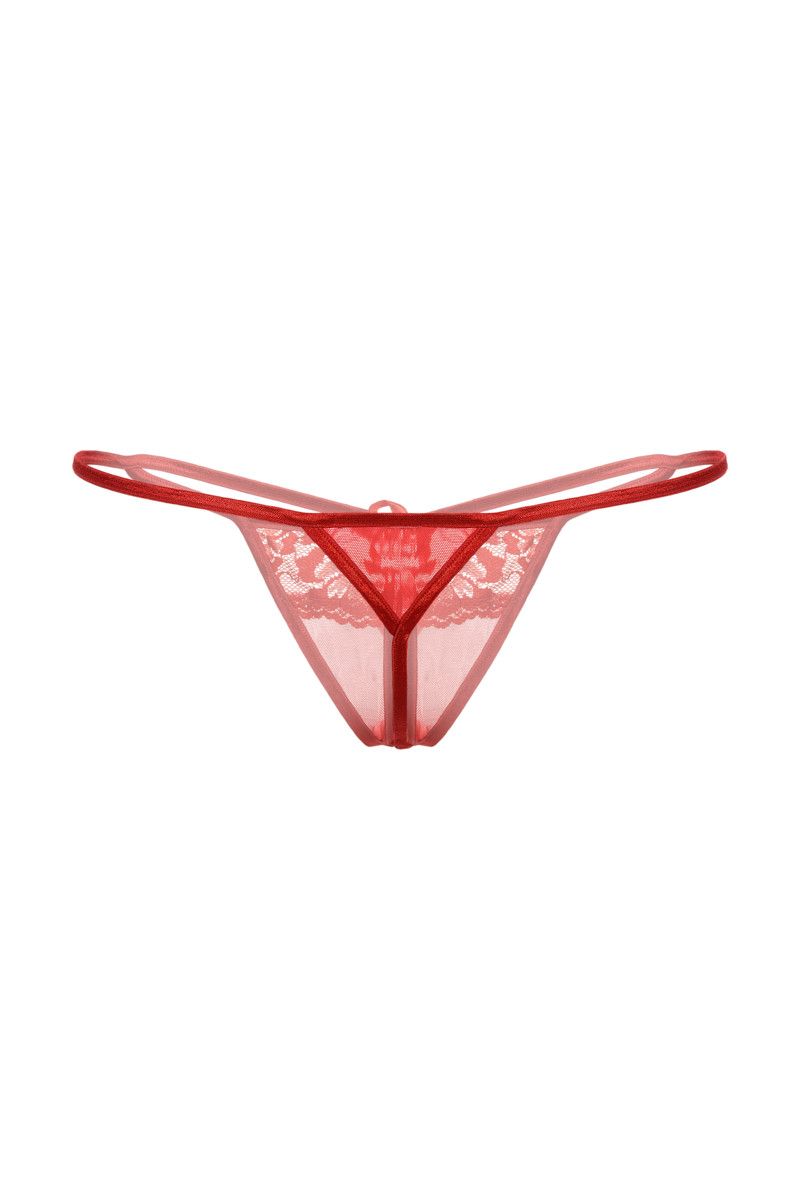 В моменты, когда страсть особенно сильна, нередко страдает…бельё. Жаждая ласки, мужчина срывает его с тела любимой, не думая ни о его красоте, ни о стоимости. Эти трусики-стринг с кружавчиками способны выдержать даже самый мощный секс-натиск. Всё потому, что внизу имеется разрез, он же – доступ к святая святых.