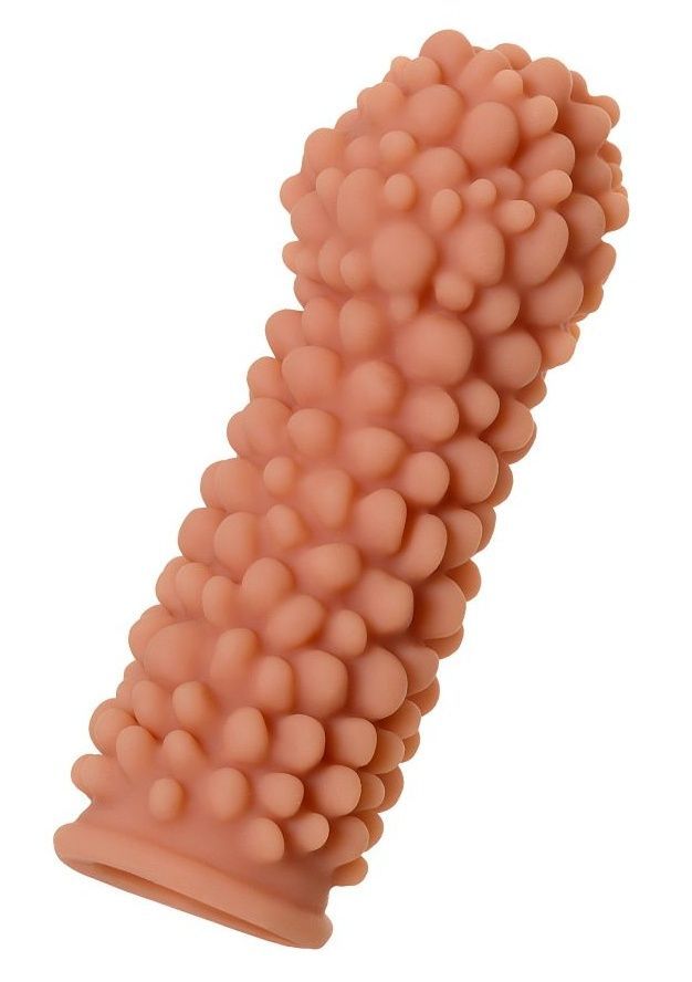 Насадка очень эластичная, имеет узор выпуклые пузырики по всей поверхности для стимуляции эрогенных зон партнера, увеличивает толщину головки и ствола пениса.
