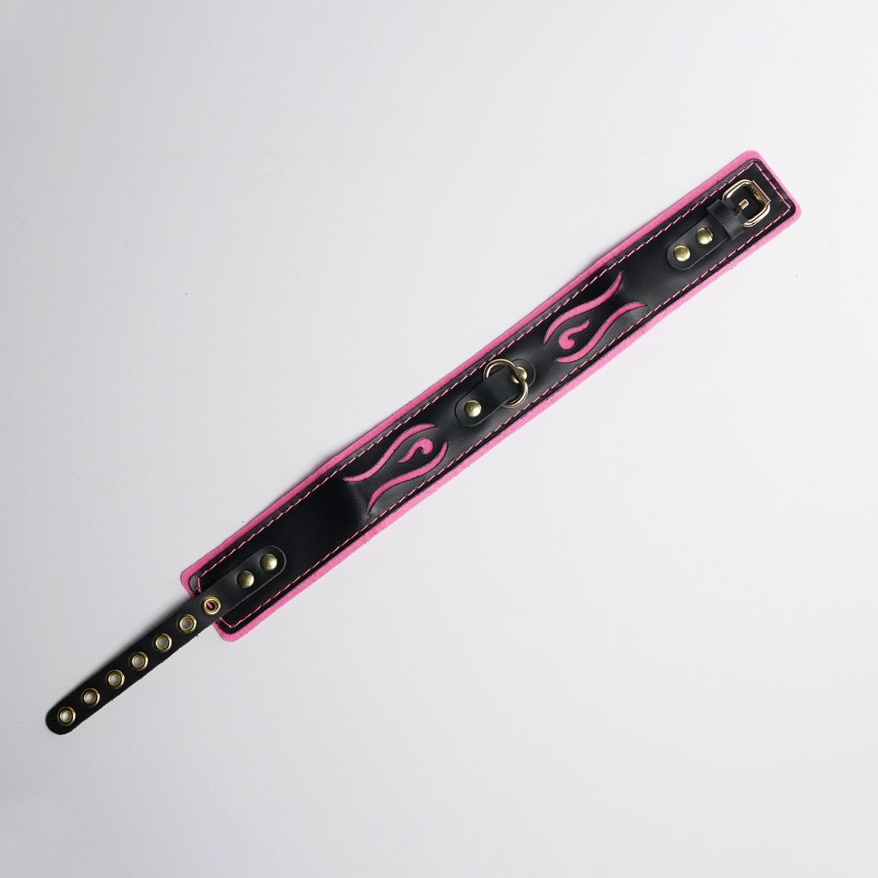 Представляем вам ошейник с авторским дизайном , который станет вашим идеальным выбором для создания особой атмосферы. Этот ошейник — это гармоничное сочетание стиля, комфорта и элегантности, созданное для тех, кто ценит детали и безупречное качество. Изделие выполнено из натуральной кожи с надежной стальной фурнитурой с золотистым покрытием , которая добавляет конструкции прочности и роскошный блеск. Мягкая подкладка розового цвета с контрастной строчкой не только обеспечивает комфортное использование, но и добавляет изделию стильный акцент, делая его запоминающимся. Резные элементы дизайна подчеркивают нежность и элегантность ошейника, акцентируя внимание на красоте и изяществе шеи. Общая длина изделия составляет 440 мм , а ширина основы — 50 мм , что делает его универсальным и подходящим для любого обхвата шеи (от 32 до 40 см). Упаковка? Она тоже произведение искусства! Ошейник доставляется в фирменной упаковке с брендированной деревянной подложкой, которая не только защищает изделие, но и делает его идеальным подарком для особого человека… или для себя любимой(-ого).