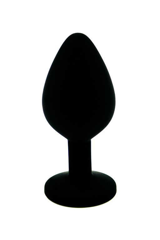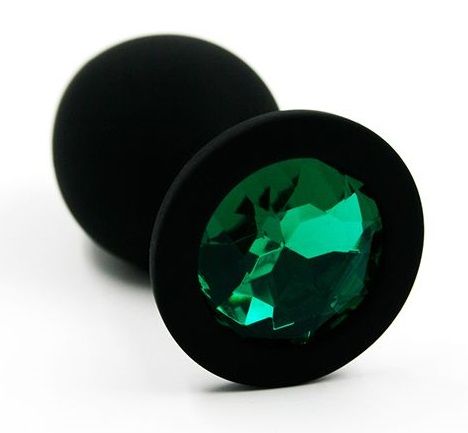 Анальная пробка из силикона черного цвета, размер M. Страз в основании круглой формы, выполнен из стекла темно-зеленого цвета. Упакована в вельветовый мешочек для хранения. Вес - 46,5 граммов.
