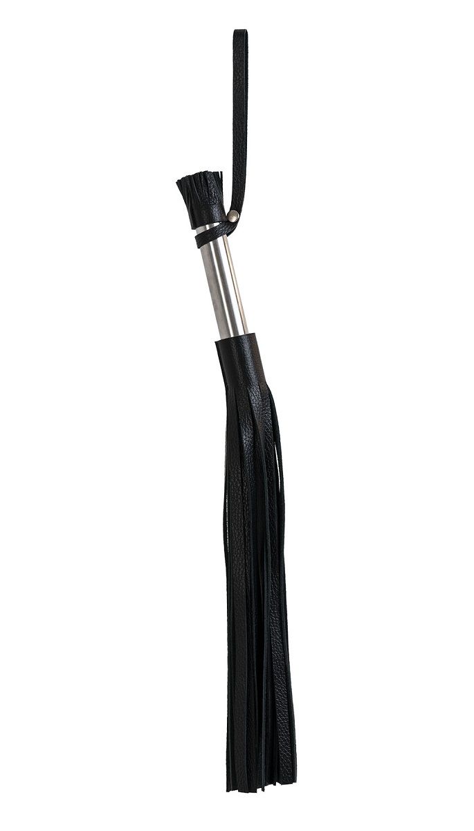Аккуратная черная плеть из натуральной кожи с ручкой из медицинской стали, украшенная декоративной кисточкой. Имеется петля для удобного использования девайса. Длина хвостов - 34 см.
