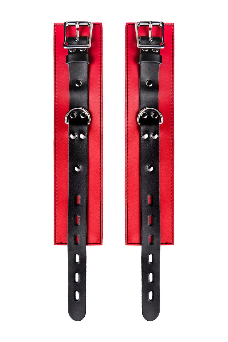 Оковы на ноги - волнующий воображение аксессуар, ведь это способ зафиксировать ноги партнера и получить полный доступ к его телу. Оковы из мягкой натуральной кожи сочетают в себе элементы, возбуждающие страсть и фантазию: красный и черный цвета и отделка металлическими элементами. В них будет комфортно подчиняться и ощущать ограничение свободы действий. Не натирают и имеют надежную степень фиксации. Размер легко регулируется металлической пряжкой. С помощью металлической цепочки и карабинов можно фиксировать ноги вместе, либо дополнить игру цепочкой и сковать ноги в широко разведенном положении. Длина манжет - 28 см., ширина - 6 см. Длина сцепки - 15,5 см.