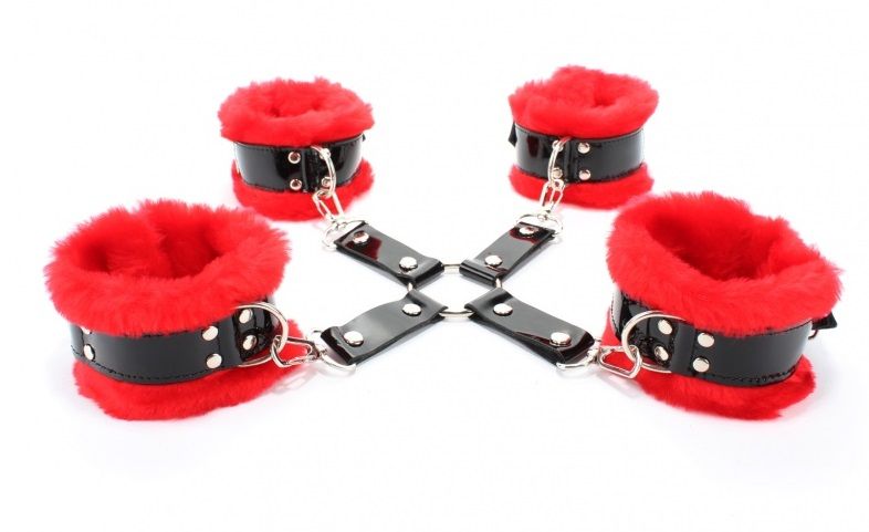 Если вам нравится доминировать во время сексуальных игр, то этот стильный набор, просто создан для удовлетворения именно таких потребностей. Изящный секс-девайс не оставит равнодушной даже очень требовательную партнершу. Благодаря безопасным материалам, бандаж не травмирует кожу и не причиняет дискомфорта. Изделие украшено роскошным мехом и лаковыми деталями, что особенно привлекает девушек. Оковы соединяются между собой карабинами.