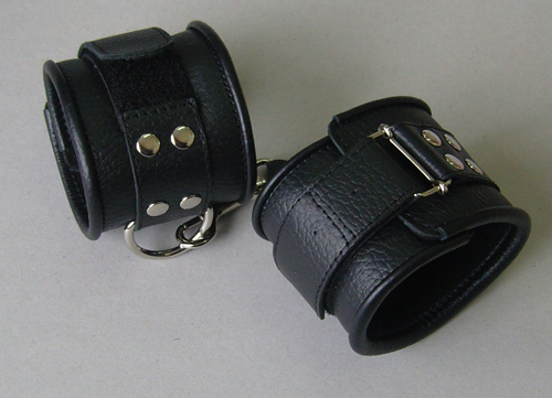 Изготавливаются из натуральной кожи с велюровой подкладой. Легко застёгиваются и расстёгиваются с помощью «липучки». Между слоем основы и подкладой проложена мягкая прокладка. Соединяются между собой коротким ремешком с двумя карабинами на концах. Не нарушают кровообращение, надёжно фиксируются на запястьях. Размер универсальный.