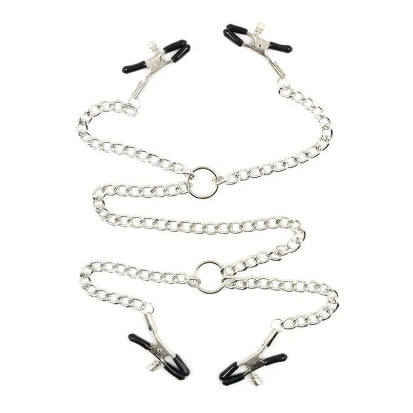 Изящные аксессуары для стимуляции сосков и половых губ и усиления сексуального возбуждения. На концах зажимов имеются специальные эластичные накладки, препятствующие сильному сдавливанию и травмированию сосков. На каждом изделии предусмотрен регулировочный винт, позволяющий контролировать силу сдавливания сосков. Интимные аксессуары могут использоваться соло или для парных любовных игр. Изделия просты в применении. Не требуют специального ухода.