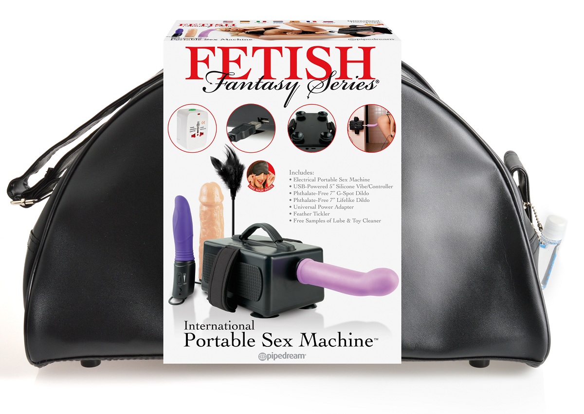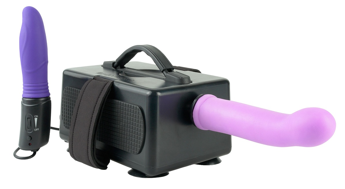 Секс-машина для вагинально-анальной стимуляции. В комплекте 2 насадки - телесная и гладкая сиреневая. Также имеется выносной вибратор для клиторальной, вагинальной и анальной стимуляции. Машина работает от сети, на днище имеются присоски для фиксации. В комплекте: пуховая кисточка, маска на глаза, лубрикант и средство для очистки секс-игрушек.