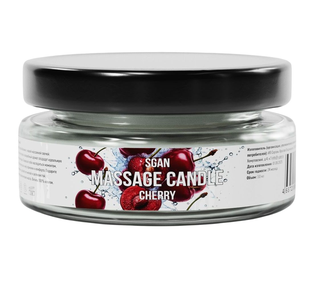 Массажная свеча с ароматом спелой вишни SGAN в стеклянной банке — это натуральное средство для расслабления, ухода за кожей и создания романтической атмосферы. Свеча изготовлена из 100% кокосового воска с добавлением ароматического масла спелая вишня и хлопкового фитиля, что обеспечивает безопасное и чистое горение. При нагревании свеча превращается в тёплое массажное масло, которое глубоко увлажняет, питает и смягчает кожу, делая её шелковистой и ухоженной. Приятный аромат вишни наполняет комнату уютом и гармонией.