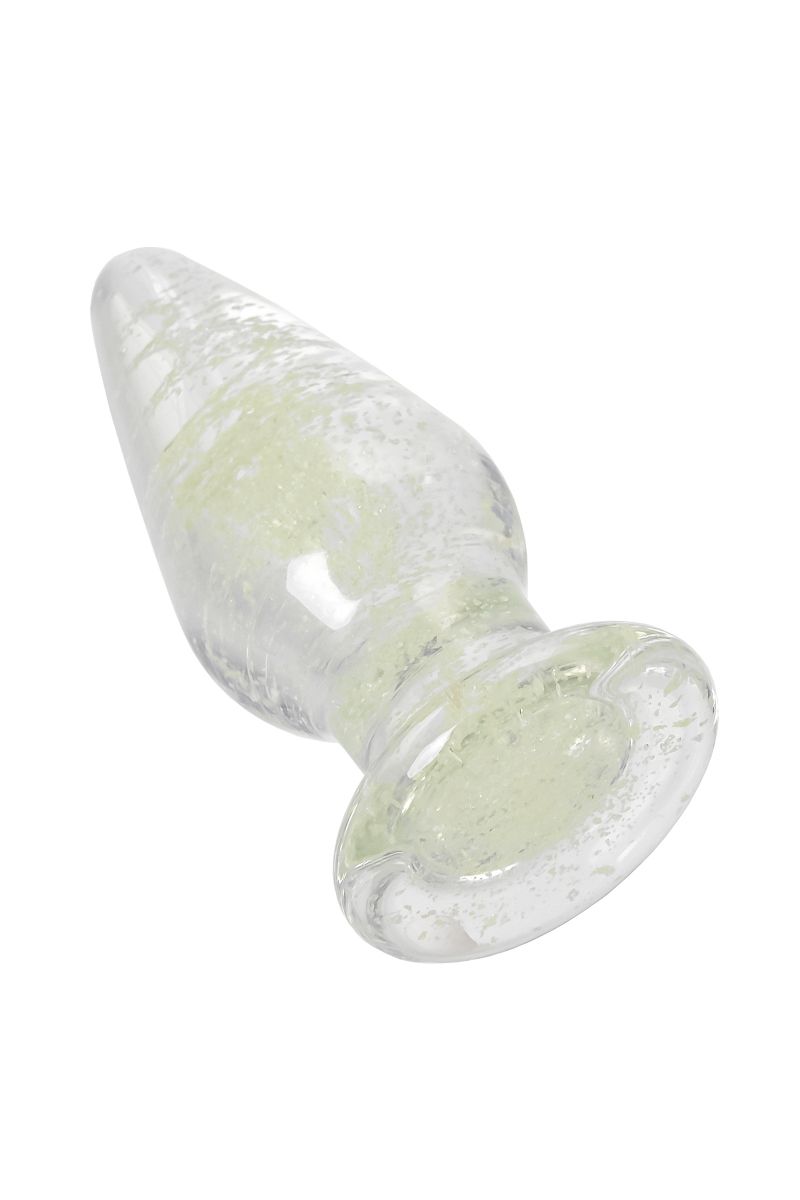 Прозрачная анальная втулка из закаленного стекла содержит флуоресцентные микрочастицы, которые светятся в темноте. Такой необычный дизайн помогает внести в интимные игры разнообразие. Достаточно зарядить игрушку под дневным или искусственным светом, чтобы насладиться ее мерцанием и свечением в темноте. Оптимальный размер, обтекаемая форма конуса и наличие ограничителя делают использование анальной игрушки безопасным.