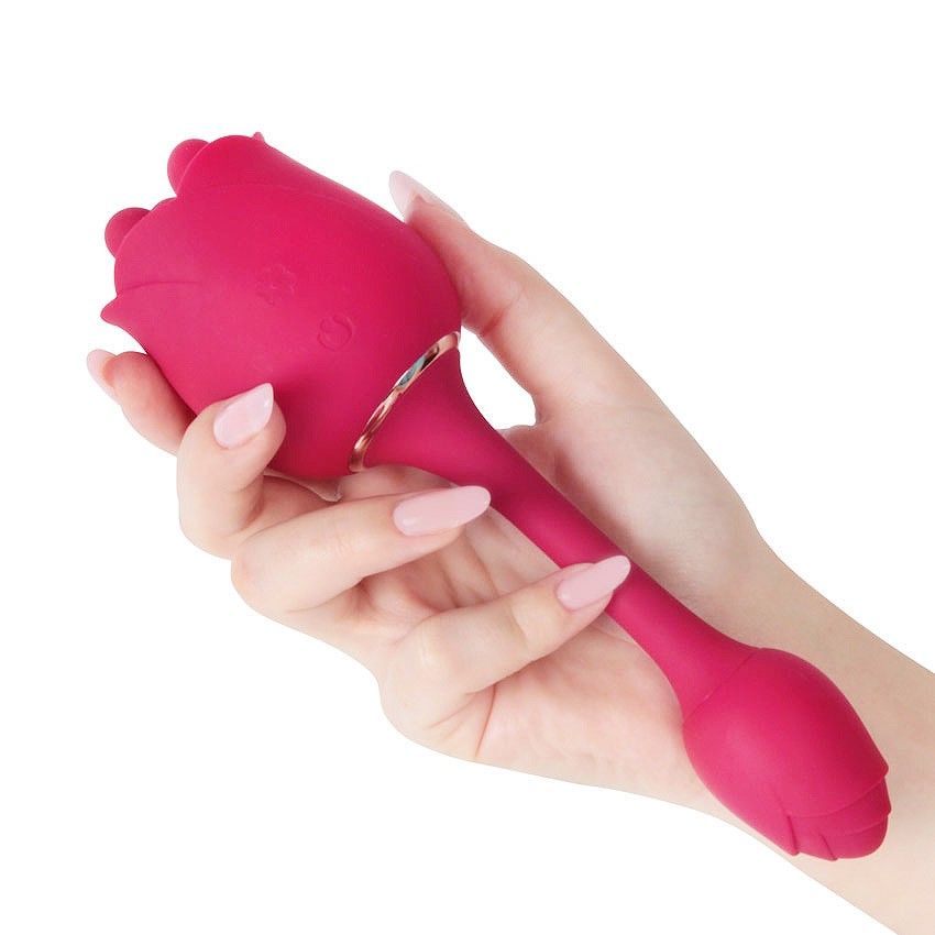 Оригинальный интимный аксессуар для стимуляции влагалища, клитора, сосков и других эрогенных зон. Внутри большого бутона в разных режимах вращаются и вибрируют тычинки. Бутон меньшего размера оснащён разнообразными виброрежимами. Ручка, соединяющая бутоны, гнётся во все стороны. Такая особенность позволяет использовать гаджет в различных вариациях. Включение/выключение вибрации и вращения тычинок — нажать и 3 сек. удерживать соответствующую кнопку на корпусе большого бутона. Должен загореться/погаснуть световой индикатор. Переключение режимов — краткое нажатие той же кнопки. Включение/выключение вибрации в маленьком бутоне — нажать и 3 сек. удерживать соответствующую кнопку на корпусе большого бутона. Должен загореться/погаснуть световой индикатор. Переключение виброрежимов — краткое нажатие той же кнопки. При этом вибрация одновременно ощущается и в маленьком бутоне, и в ручке, соединяющей бутоны. Вибрацию/вращение тычинок в большом бутоне и вибрацию в маленьком бутоне можно включать одновременно или по отдельности. Рабочая длина - 13,4 см.