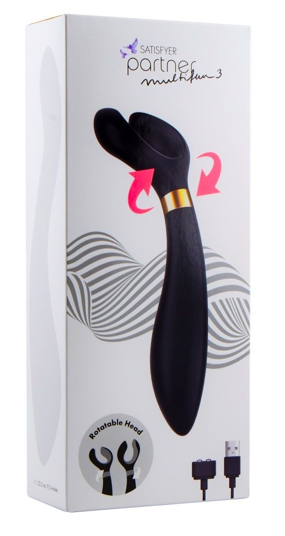 Satisfyer Partner Multifun 3 - это универсальный вибромассажер. В стильном силиконовом корпусе располагаются 3 мощных мотора, Имеется 10 режимов вибрации в независимых друг от друга подвижных усиках игрушки, что позволяет насчитать 100 вариантов комбинаций вибрации! Режимы управляются сенсорными кнопками на рукоятке игрушки. Подвижная головка Satisfyer Multifun 3 поворачивается на 180 градусов – многофункциональная сексуальная игрушка позволяет играть в какие угодно игры и в любом положении! Отлично подойдет как для парных игр, так и игр соло (игрушка может предложить Вам целых 33 варианта применения в постели!). Изготовлен из гладкого, шелковистого медицинского силикона, имеет вставки из пластика. Имеет эргономичную форму. Магнитный кабель для зарядки USB в комплекте. Длина ствола - 14 см., диаметр - 4,2 см.